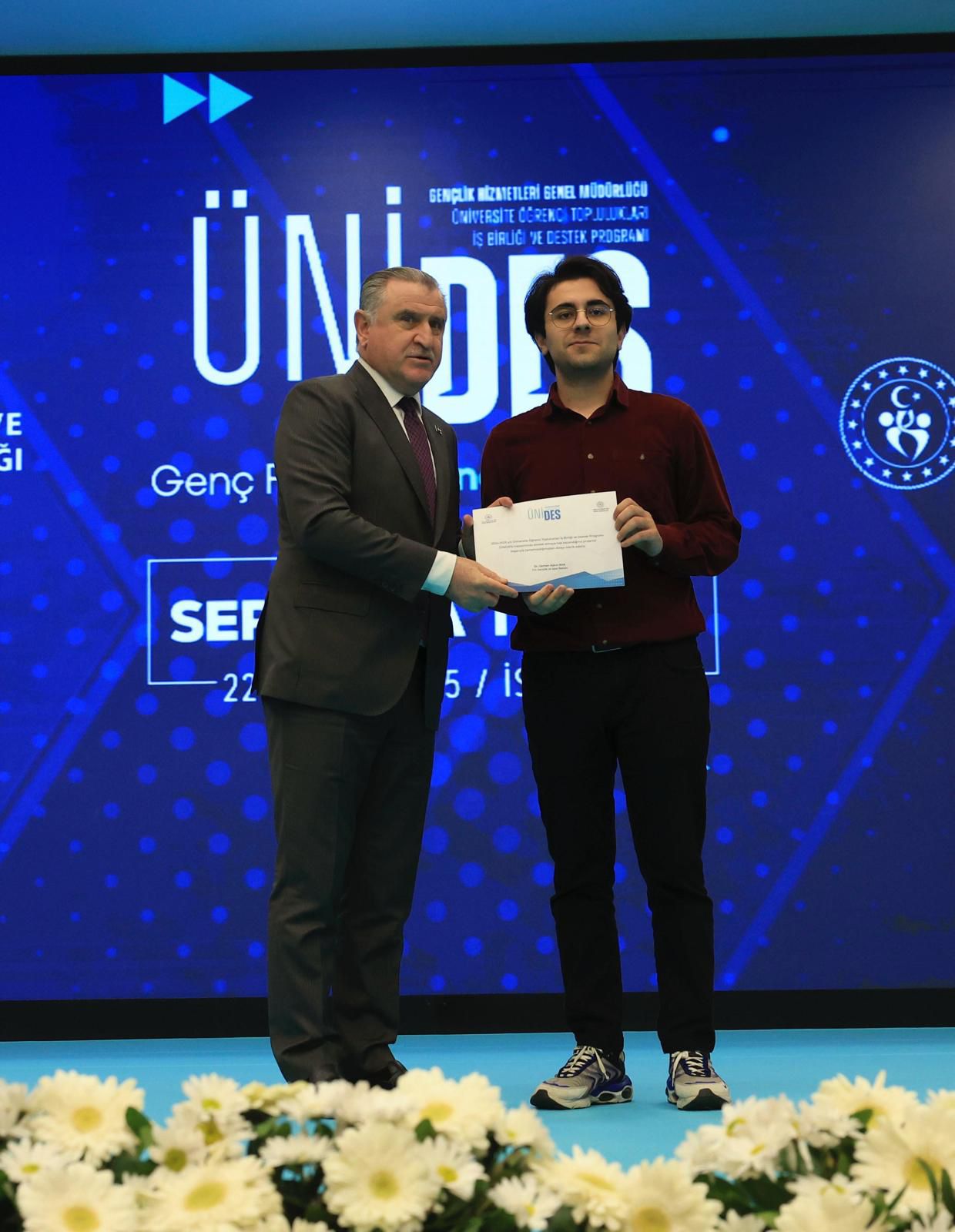 The certificate ceremony for Ünides Projects that were successfully completed in previous periods was held this year with the participation of Minister of Youth and Sports Osman Aşkın Bak. During the event, representatives of three selected exemplary projects from different fields delivered short speeches.