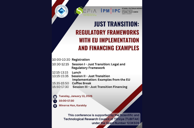 İstanbul Politikalar Merkezi (İPM), Boğaziçi Üniversitesi ve Sürdürülebilir Ekonomi ve Finans Araştırmaları Derneği (SEFİA) iş birliğiyle düzenlenen “Adil Geçiş: Düzenleyici Çerçeveler ile AB’den Uygulama ve Finansman Örnekleri” başlıklı konferans, 13 Ocak 2026 Salı günü 10.00–17.30 saatleri arasında gerçekleştirilecek.