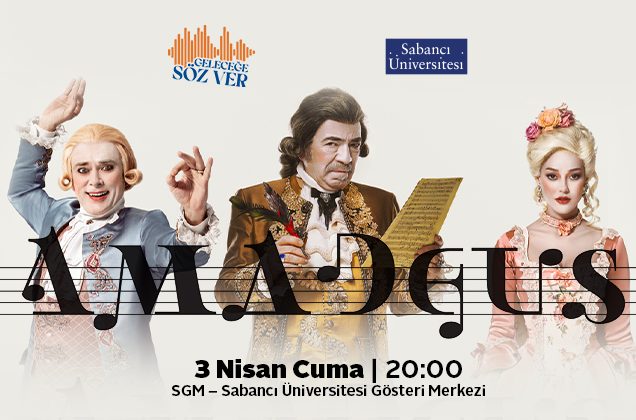 Sabancı Üniversitesi, tiyatro dünyasının en görkemli yapımlarından biri olan Amadeus oyununu sanatseverlerle buluşturuyor. Dünya müzik tarihinin iki unutulmaz ismi Wolfgang Amadeus Mozart ve Antonio Salieri’nin çarpıcı hikâyesini konu alan oyun, 3 Nisan Cuma günü saat 20.00’de Sabancı Üniversitesi Gösteri Merkezi (SGM) sahnesinde izleyiciyle buluşacak.