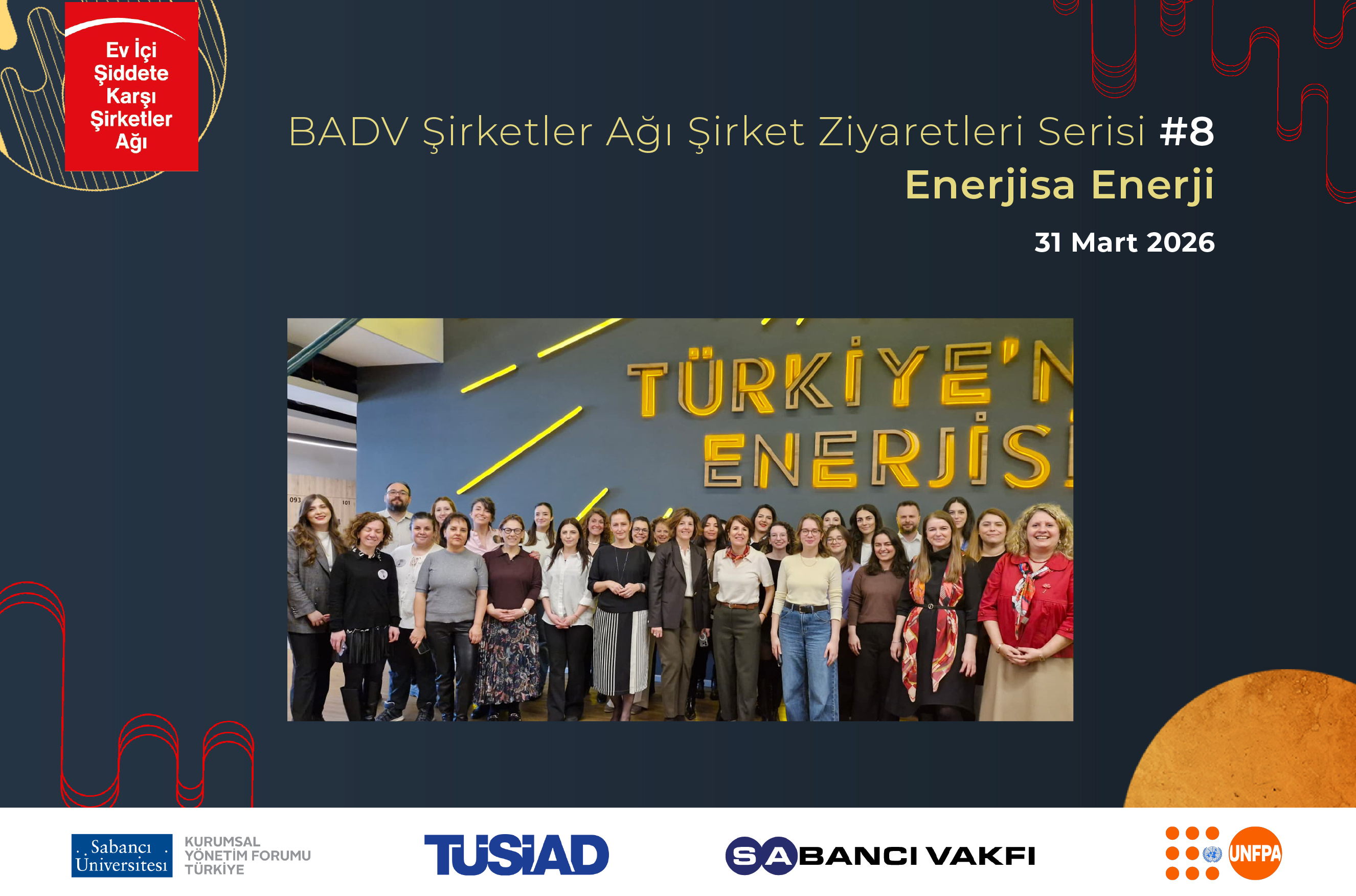 BADV Şirketler Ağı üyelerinin toplumsal cinsiyet eşitliğinin sağlanması ve ev içi şiddetle mücadele konularında şirketlerin birbirlerinin deneyimlerinden öğrenmeleri hedefiyle düzenlenen Şirket Ziyaretleri serimizin sekizincisi, 31 Mart’ta Enerjisa Enerji’nin ev sahipliğinde gerçekleşti.