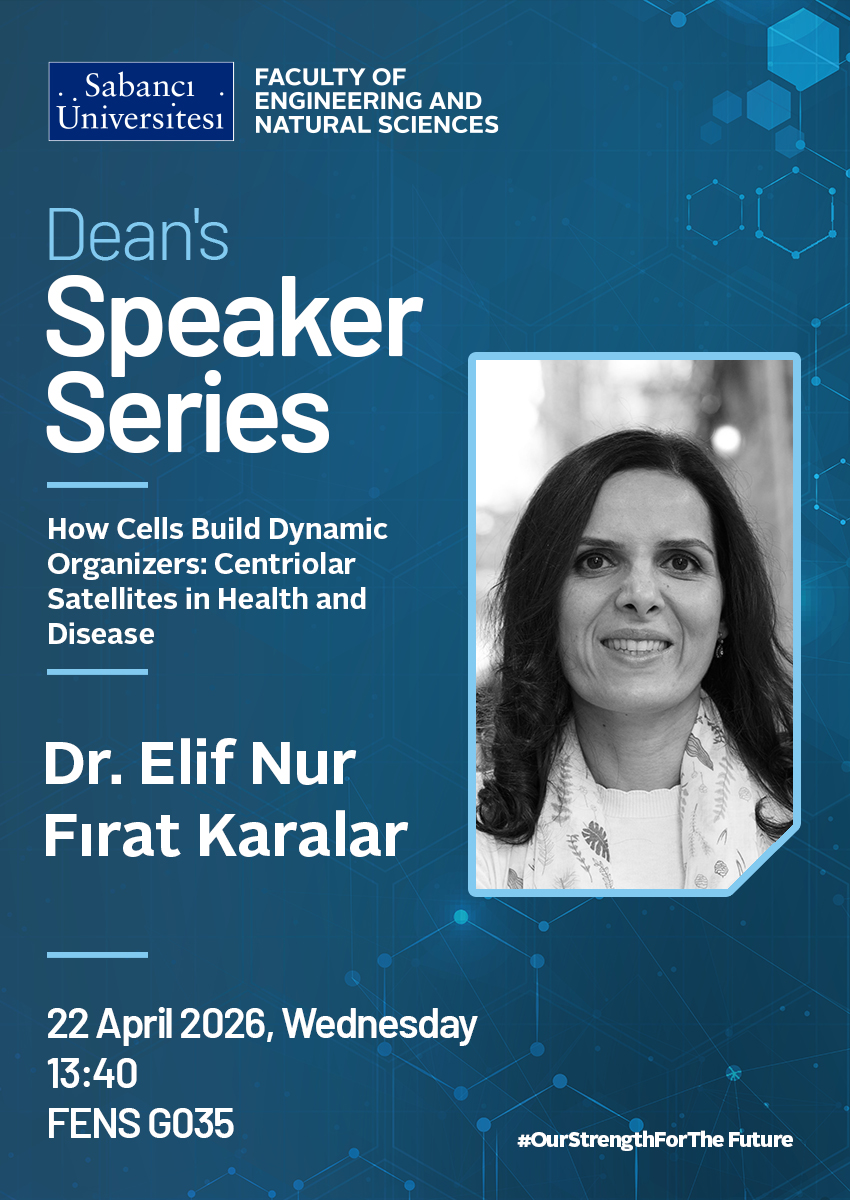 Dean’s Speaker Series, farklı disiplinlerden önde gelen bilim insanlarını Sabancı Üniversitesi’nde bir araya getirerek güncel bilimsel tartışmalara zemin hazırlamayı sürdürüyor. Bu kapsamda düzenlenecek yeni seminerde Dr. Elif Nur Fırat Karalar, “How Cells Build Dynamic Organizers: Centriolar Satellites in Health and Disease” başlıklı konuşmasıyla hücrelerin dinamik organizasyon mekanizmalarını ve bu yapıların sağlık ile hastalık süreçlerindeki rolünü ele alacak.