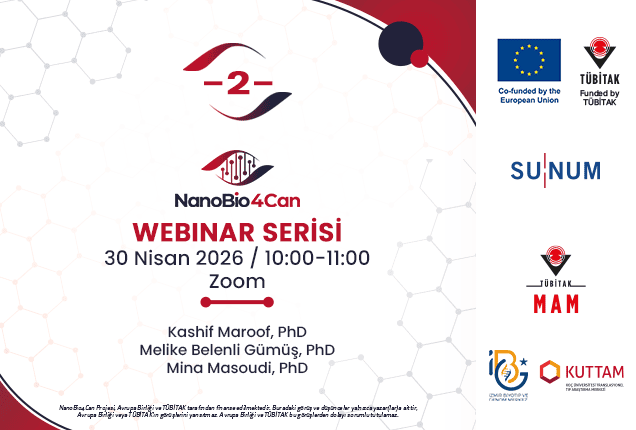NanoBio4Can Programı kapsamında, doktora sonrası araştırmacıların bilimsel çalışmaları hakkında bilgiler paylaşacağı “NanoBio4Can Aylık Webinar Serisi” 30 Nisan 2026 Perşembe günü devam ediyor. MSCA COFUND Hibe Anlaşması’nın yaygınlaştırma ve iletişim çalışmaları çerçevesinde düzenlenecek olan webinar’larda araştırmacılar, bilimsel çalışmalarını hem meslektaşlarıyla hem de konuya ilgi duyan araştırmacılarla paylaşma fırsatı bulacak.