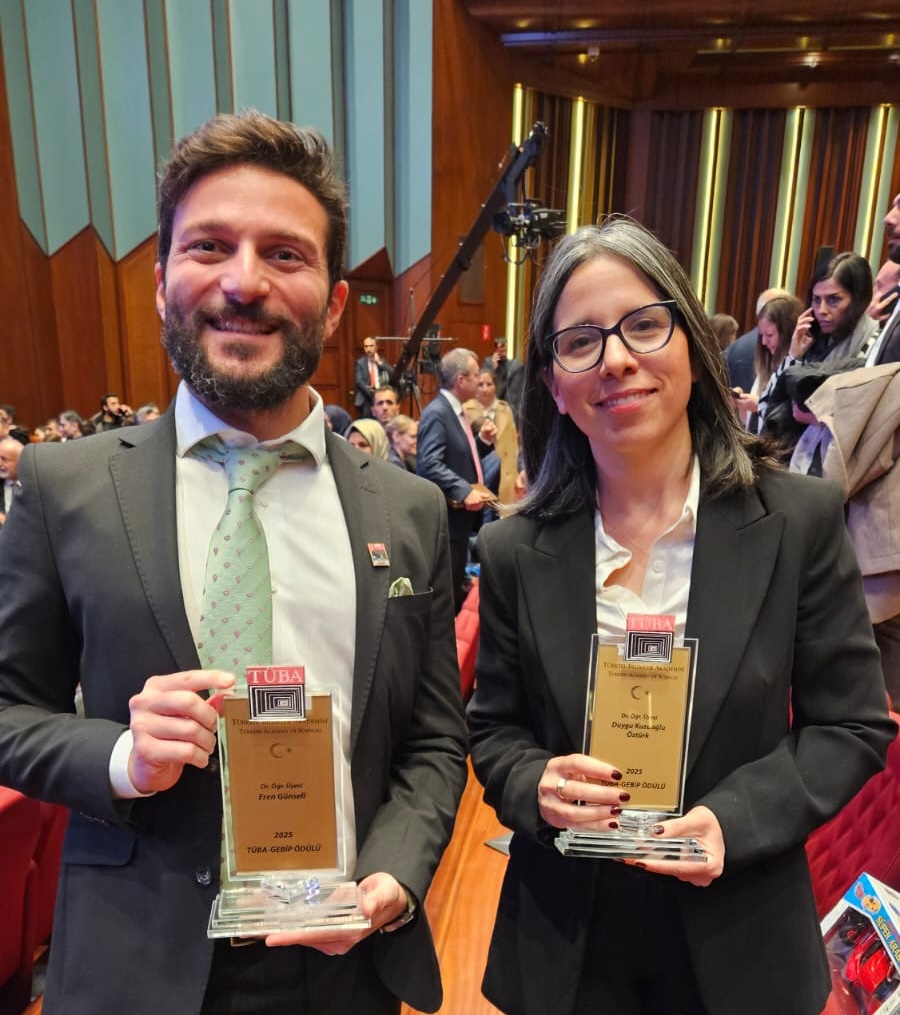 Türkiye Bilimler Akademisi’nin (TÜBA), genç bilim insanlarını desteklemek amacıyla verdiği Üstün Başarılı Genç Bilim İnsanı Ödülleri (TÜBA-GEBİP) 2025 yılı ödül töreni, Cumhurbaşkanlığı Külliyesi’nde gerçekleştirildi. Sabancı Üniversitesi Mühendislik ve Doğa Bilimleri Fakültesi Öğretim Üyesi Dr. Duygu Kuzuoğlu Öztürk ile Sanat ve Sosyal Bilimler Fakültesi Öğretim Üyesi Dr. Eren Günseli’ye ödülleri, Cumhurbaşkanı Recep Tayyip Erdoğan tarafından takdim edildi.