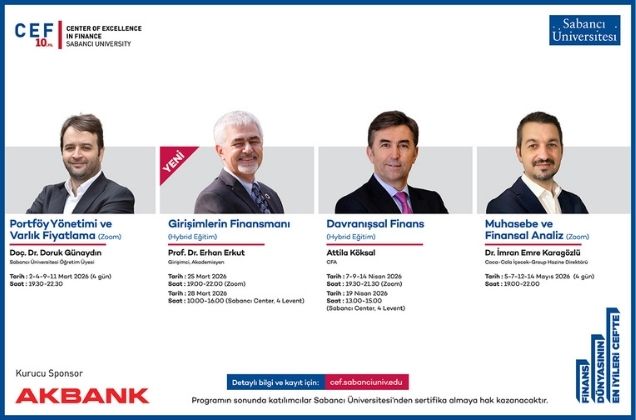 Akademi ve finans dünyasının yanı sıra reel sektörden bireysel yatırımcılara kadar farklı alanlardaki katılımcılara yönelik düzenlenen sertifika programlarına dair daha fazla bilgi ve başvuru için cef.sabanciuniv.edu adresini ziyaret edebilirsiniz.