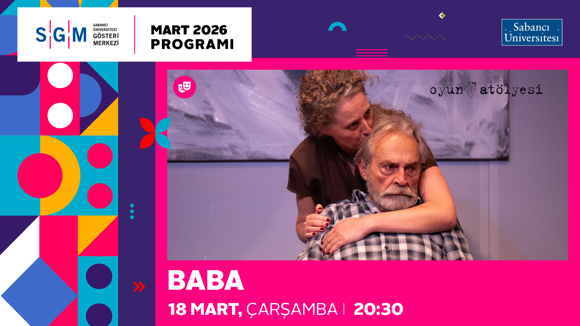 Oyuncu kadrosunda Haluk Bilginer’in yanı sıra Özlem Zeynep Dinsel, Faruk Barman, Ezgi Coşkun, Mine Nur Şen ve Ufuk Tevge yer alıyor. Ensemble ekibinde ise Ceren Şık, Ezgi Metin, Arkan Mert Atakan, Berkay Tüfekçi ve Armanç Toktaş bulunuyor. “Baba”, 18 Mart akşamı saat 20.30’da SGM sahnesinde.