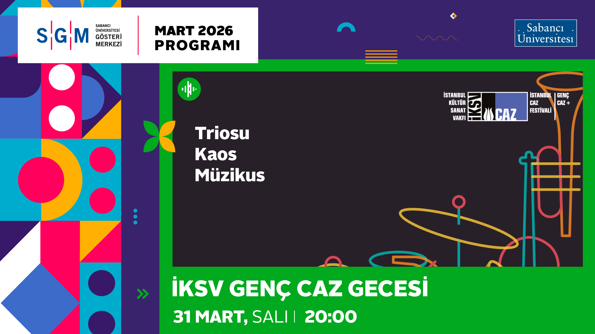 SGM’de Mart ayı, İKSV Genç Caz Gecesi ile ritmik bir final yapıyor. Piyano trio geleneğini çağdaş yorumlarla sürdüren Triosu, repertuvarında modern trio örneklerine yer veriyor. Topluluk; piyanoda İlayda Hatipoğlu, elektrik basta Melih Can Yardı ve davulda Mehmet Hecebil’den oluşuyor.