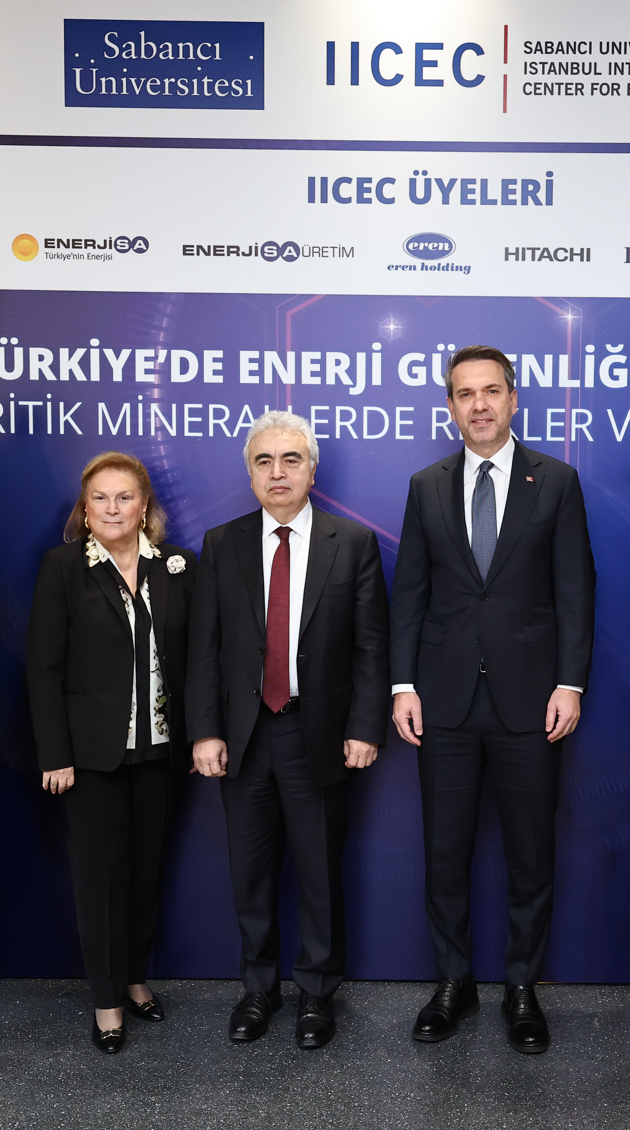 Sabancı Üniversitesi İstanbul Uluslararası Enerji ve İklim Merkezi’nin (IICEC) düzenlediği 19. IICEC Konferansı “Dünyada ve Türkiye’de Enerji Güvenliğinin Bugünü ve Yarını: Kritik Minerallerde Riskler ve Çözümler” temasıyla gerçekleştirildi. T.C. Enerji ve Tabii Kaynaklar Bakanı Dr. Alparslan Bayraktar’ın onur konuğu olarak katıldığı konferans, Sabancı Üniversitesi Kurucu Mütevelli Heyeti Başkanı Güler Sabancı ile Uluslararası Enerji Ajansı (IEA) Başkanı ve IICEC Onursal Başkanı Dr. Fatih Birol’un konuşmalarıyla başladı.
