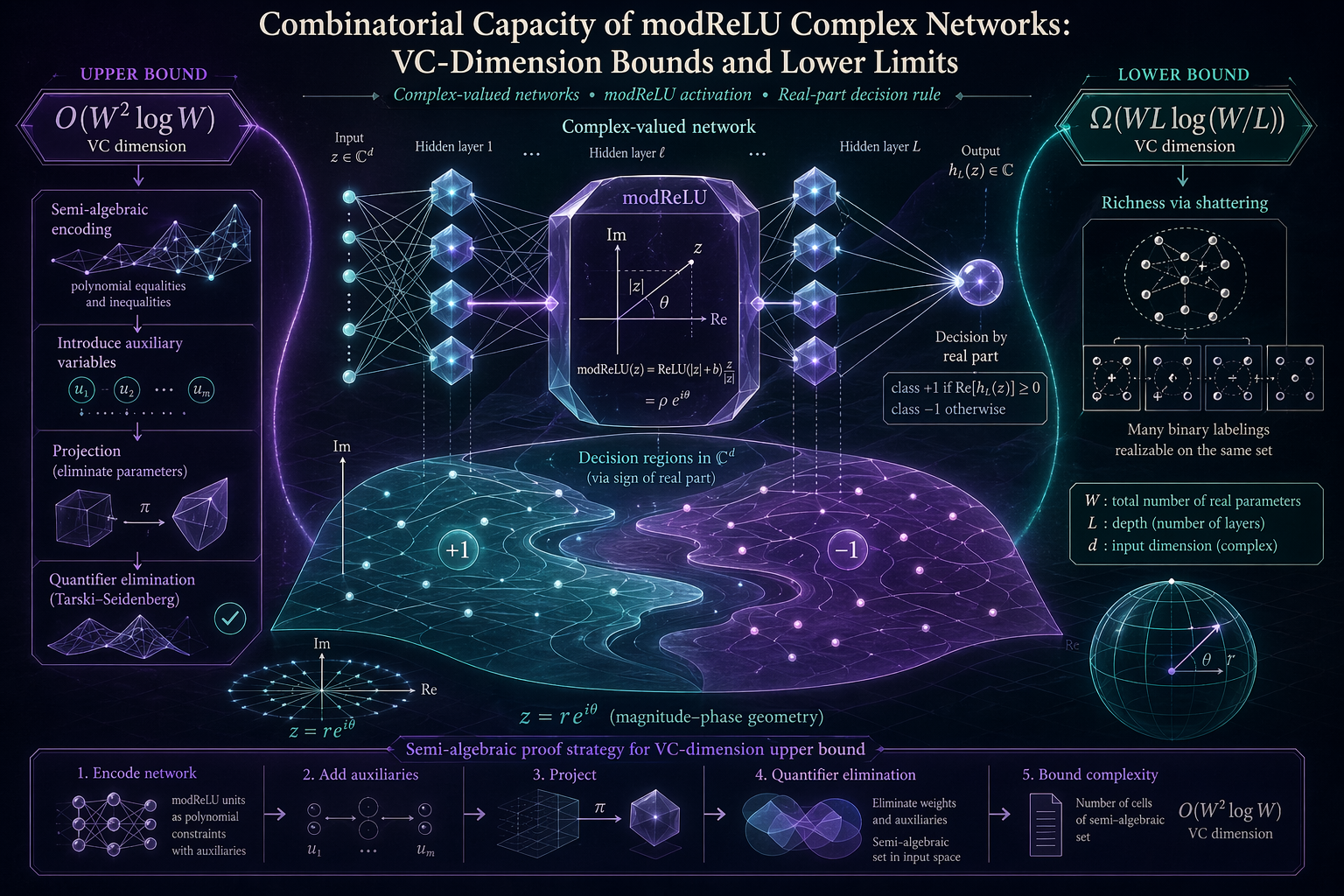 Mehmet Altunören’in tek yazarlı makalesi, Transactions on Machine Learning Research dergisinde yayımlandı. “Combinatorial Capacity of modReLU Complex Networks: VC- Dimension Bounds and Lower Limits” başlıklı çalışmada, karmaşık değerli sinir ağlarının (CVNN) istatistiksel kapasitesi VC-dimension bağlamında ele alınıyor. Özellikle hem genlik hem faz bilgisinin önemli olduğu uygulamalarda kullanılan modReLU aktivasyonuna sahip derin ağlar incelenerek, bu ağların kombinatoryal kapasitesine yönelik yeni sınırlar ortaya konuyor.