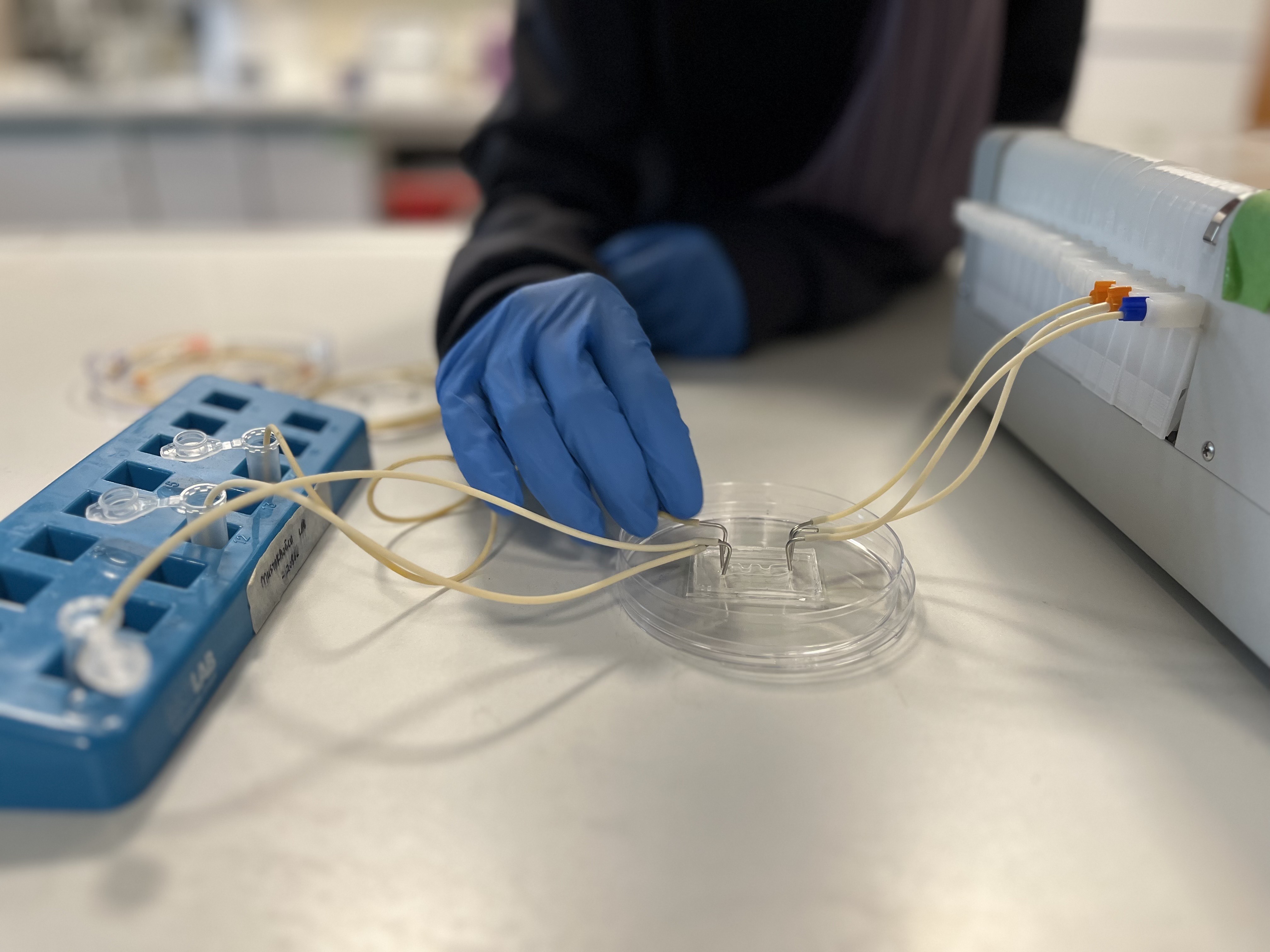 Mustafaoğlu KBB nedeniyle beyne ilaç taşınmasında yaşanan zorluklara dikkat çekerek, son zamanlarda geliştirilen organ çip modellerini bu yapıyı insan hücreleri ile modellemek ve sonrasında üzerinde ilaç testleri yapmak için kullandıklarını açıklıyor. Organ çipler insan organlarının karmaşık yapılarını ve işlevlerini taklit edebilen mikroakışkan cihazlardır. Bu çipler Mustafaoğlu Lab’ında geliştiriliyor. Ve bunların en önemli özelliği hayvanların ve insanların deneylerde kullanılmasına gerek kalmadan ilaçların etkilerini anlamamıza olanak sağlamasıdır. Ayrıca bu teknoloji kişiye özel tıp teknolojisinin gelişmesine de zemin hazırlıyor.