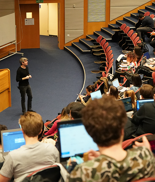 Bugün Dr. Emre Erol bu özgürlük ortamının korunmasında önemli bir rol üstleniyor. 2019’dan bu yana Temel Gelişim Programı Direktörü olarak çekirdek müfredat tasarımı ve uygulanması onun ve ekibinin sorumluluğunda. “Türkiye’de çekirdek müfredat tasarımını uygulayan ilk üniversite olarak Sabancı Üniversitesi, gelecekteki uzmanlık alanlarından bağımsız olarak okula başlayan öğrencilerin bu temel dersleri almasını sağlar” diye konuşan Dr. Erol, Üniversite Dersleri olarak bilinen bu çekirdek müfredatı şöyle açıklıyor: “Bu dersler öğrencinin toplam kredi yükünün yaklaşık üçte birini oluşturur ve tüm lisans eğitimi boyunca devam eder. Çoğu ders birinci sınıfta tamamlanırken, bazıları ikinci, üçüncü ve hatta tercihe göre dördüncü sınıflara kadar uzanır. Üniversite Dersleri’nden oluşan çekirdek müfredatın kendine özgün program hedefleri vardır ve yaşam boyu öğrenebilen, sorgulayan, bilimsel düşünceyi özümsemiş, disiplinlerarası bağlar kuran bireyler yetiştirmeyi hedefler. Aynı zamanda farklı eğitim geçmişlerine sahip öğrencileri ortak bir akademik seviyeye kavuşturur ve böylece öğrencilere üniversiteye kayıt olduktan sonra farklı disiplinler hakkında bilgi edinerek bilinçli ve özgür bir biçimde diploma programını seçebilme imkanı sağlamaktır.”